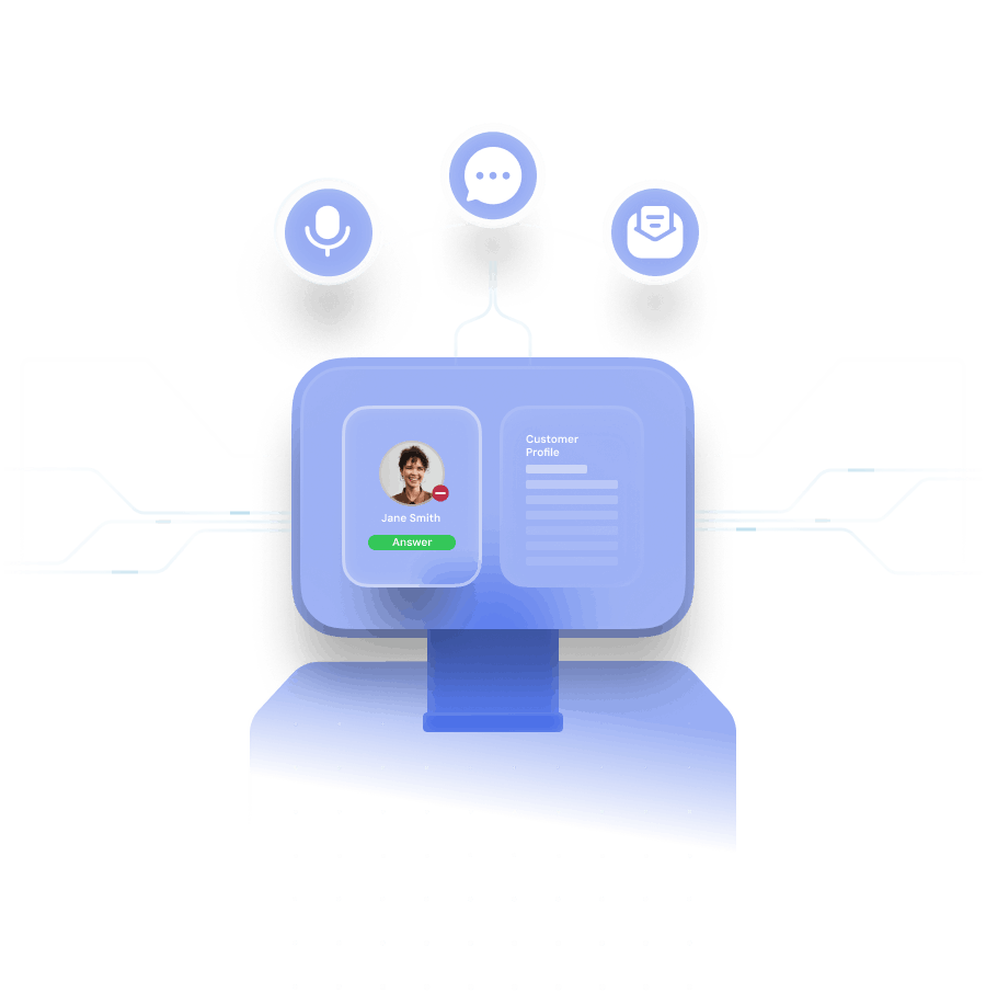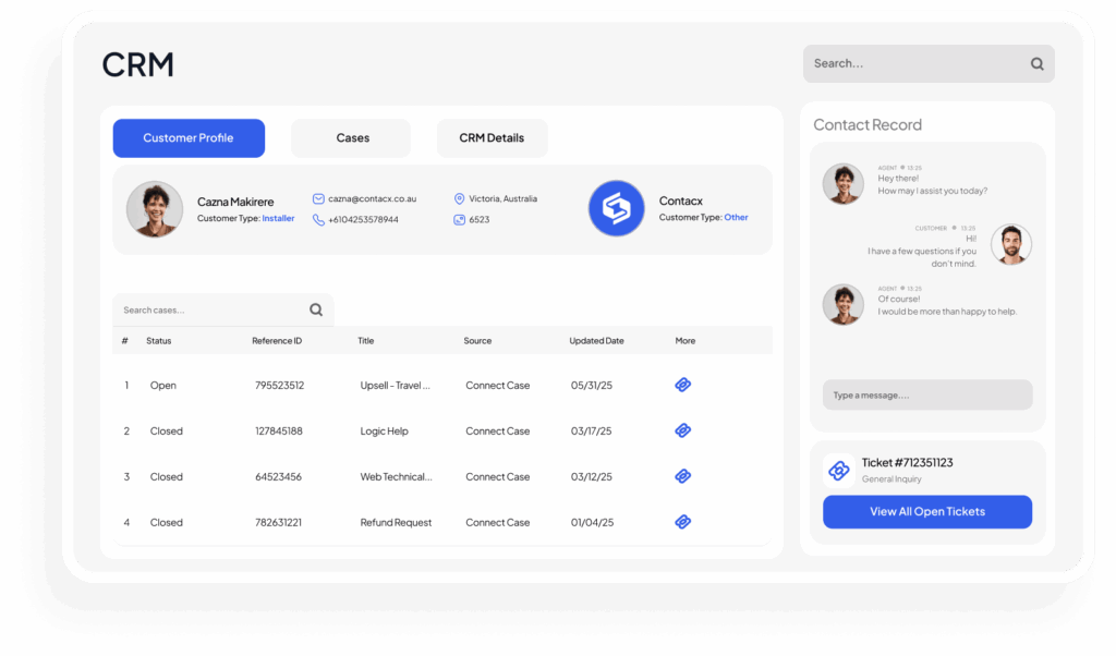 Give agents and AI Bots instant visibility of a customer’s journey across calls, chats, emails, and tasks within their workspace. This shared context reduces repetitive questions, improves continuity, and helps agents resolve enquiries faster. It also supports better handovers and a more personalised service experience across every channel.